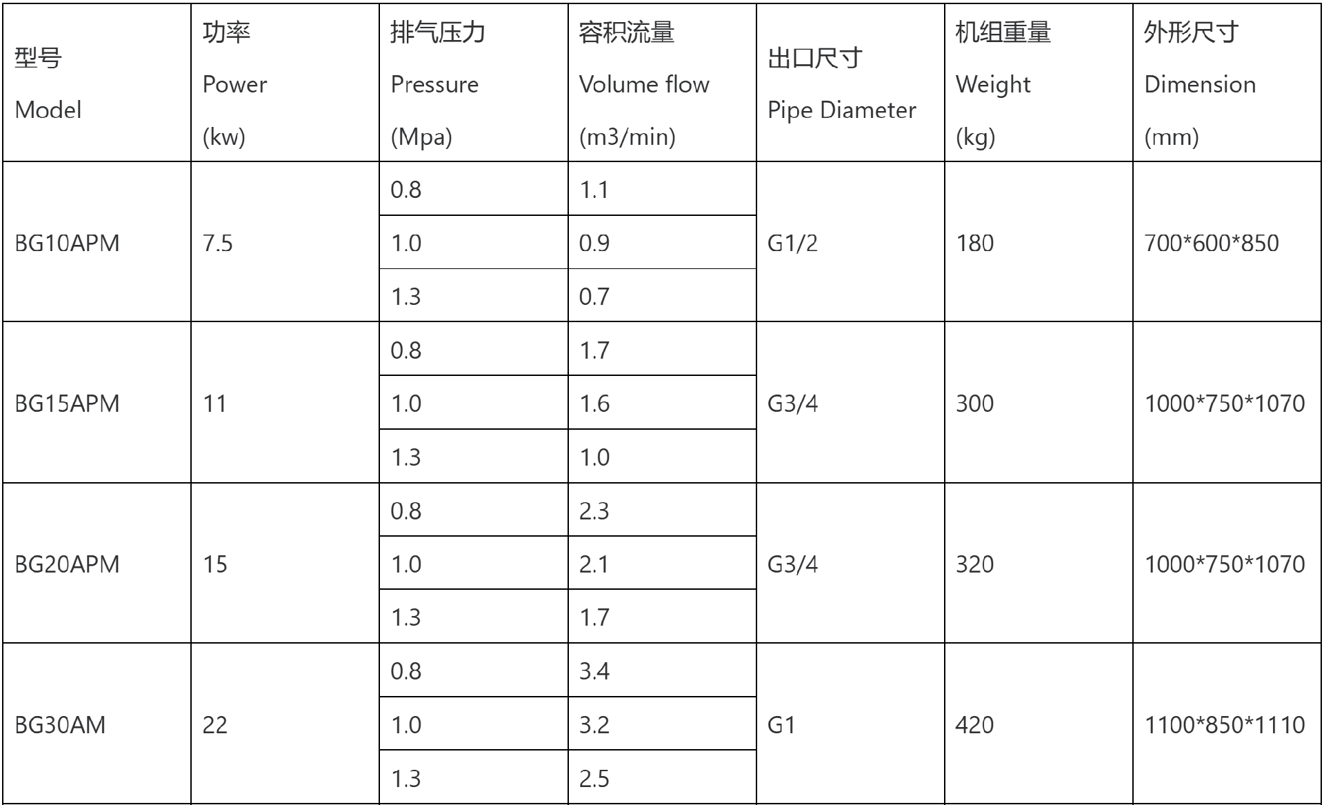 产品描述:永磁变频机组采用全新的设计,高效永磁电机和高效主机的完美搭配,通过变频器先进的调速变频技术,可以大幅降低客户的使用成本,提供稳定、可靠的压缩空气。永磁变频螺杆式空压机技术参术/Technical parameter型号Mo···